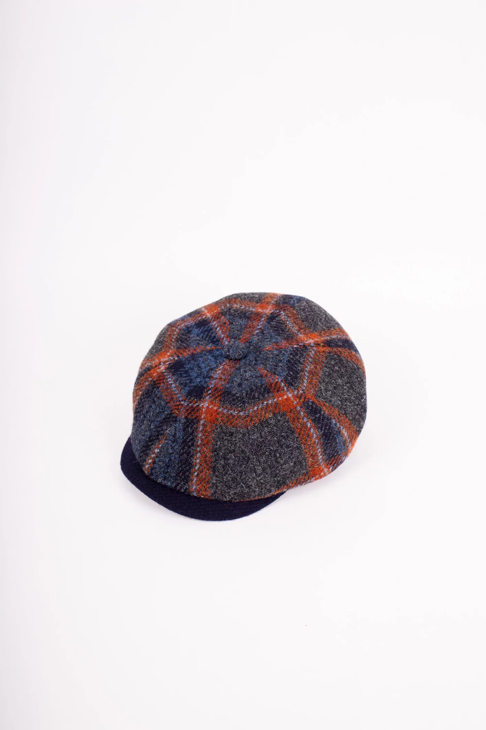 Material: 100% Schurwolle Futter: 100% Baumwolle Farbe: Blau/Grau/Rost Schirmlänge: ca. 6 cm