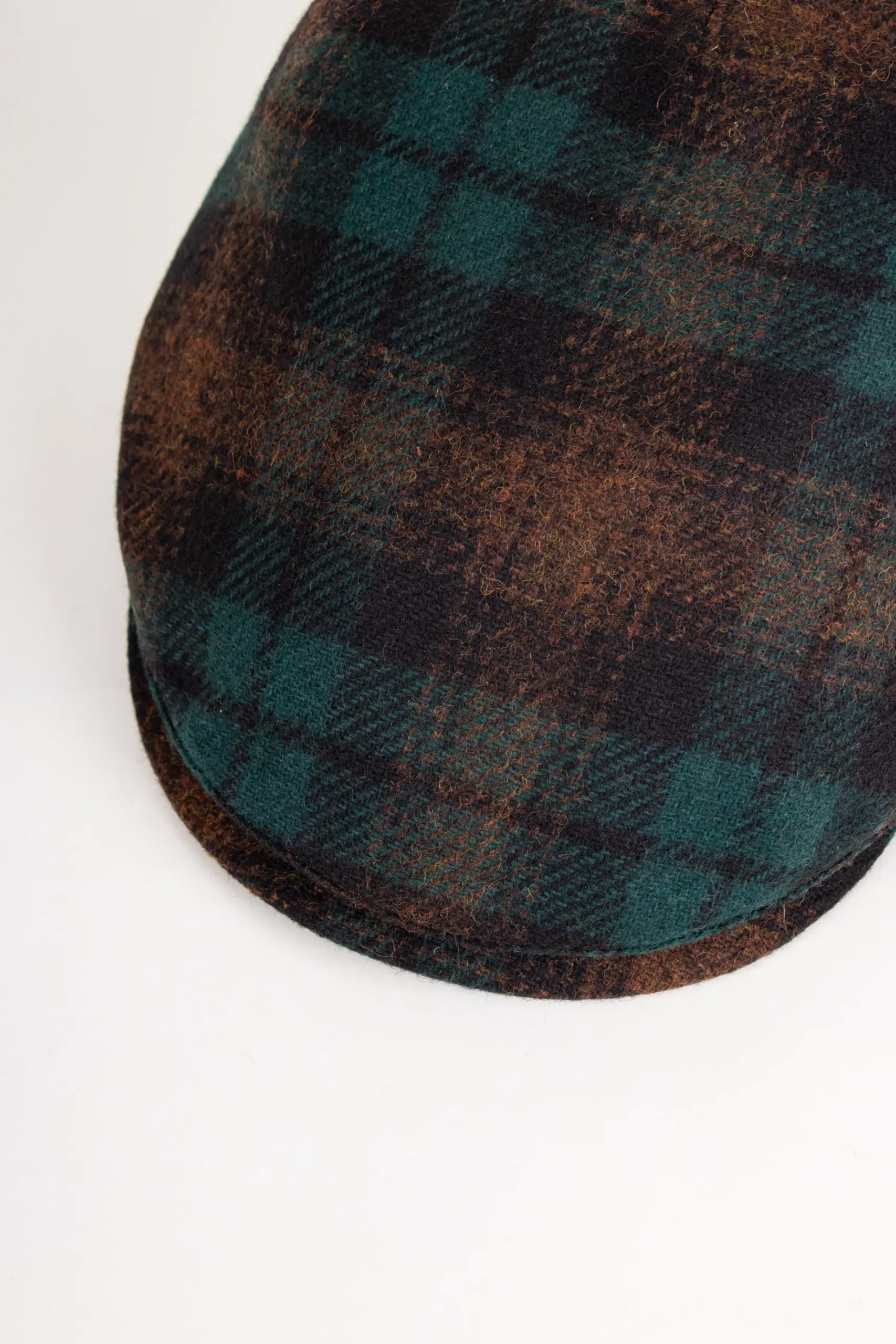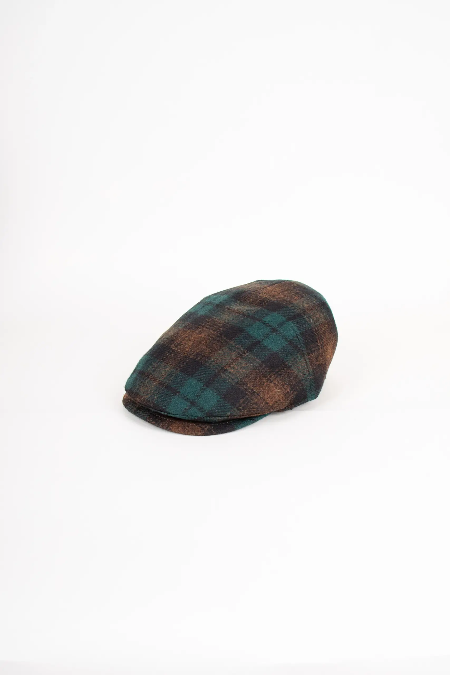 Material: 75% Wolle, 25% Polyamid Futter: 100% Baumwolle Farbe: Grün/Braun kariert Schirmlänge: ca. 5,5 cm