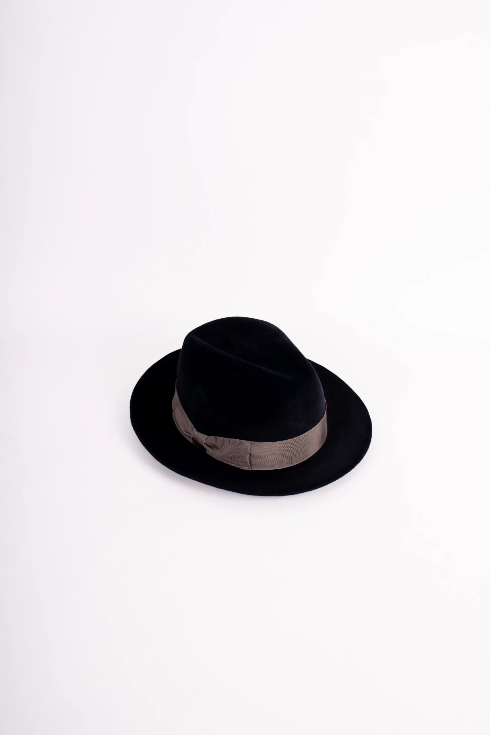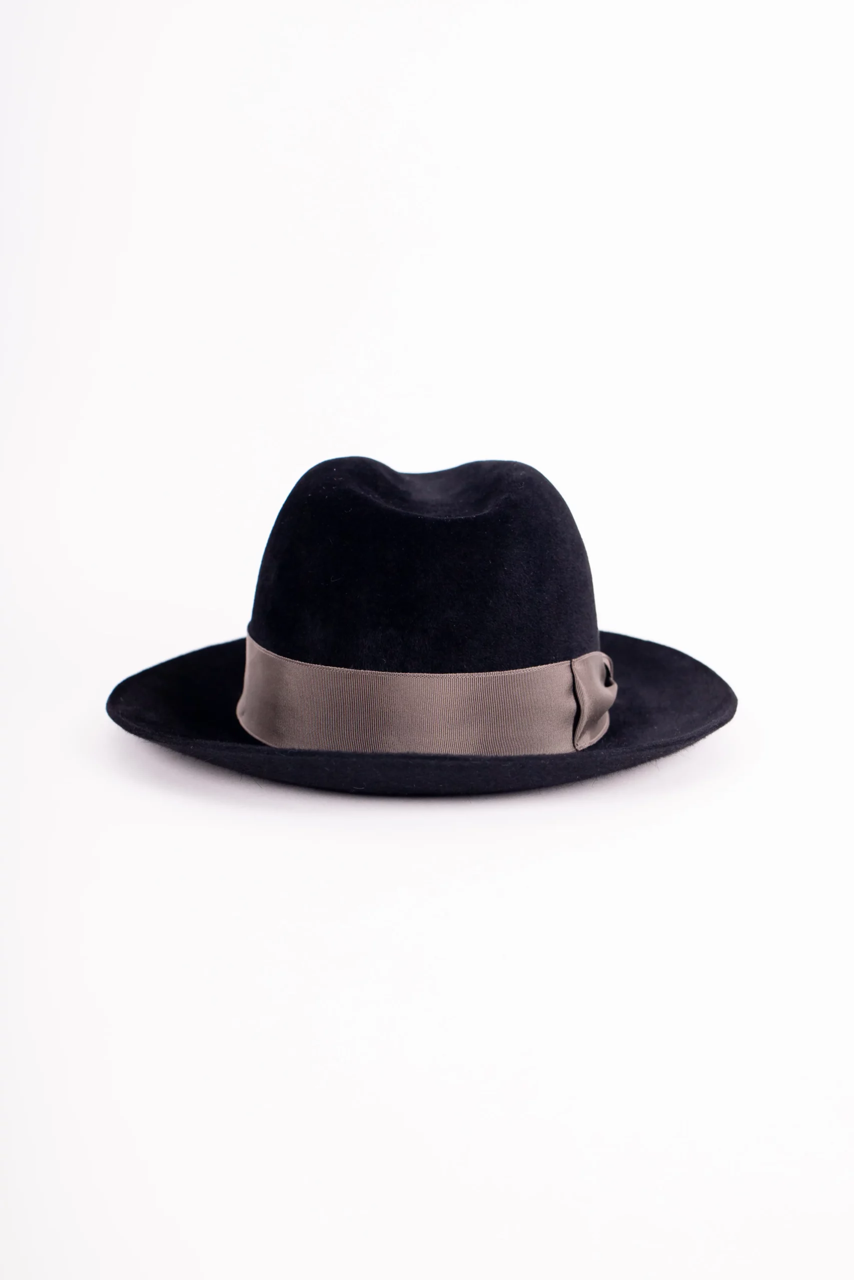 Das Modell Atelier Falkenhagen Marlene ist ein handgefertigter Haarfilz in einer klassischen Herrenhutform. Die aufgeschlagene Hutkrempe verleiht diesem trendigen Fedora den gewissen Schwung. Das harmonisch abgestimmte, zu einer Schleifenform gebundene Garniturband unterstreicht stilgerecht die moderne Eleganz. Tragbar zum klassischen Mantel und genauso geeignet zur trendigen Jacke. Dieses Modell wird für die Trägerin individuell in der Größe gefertigt, bitte nehmen Sie Kontakt zu uns auf.