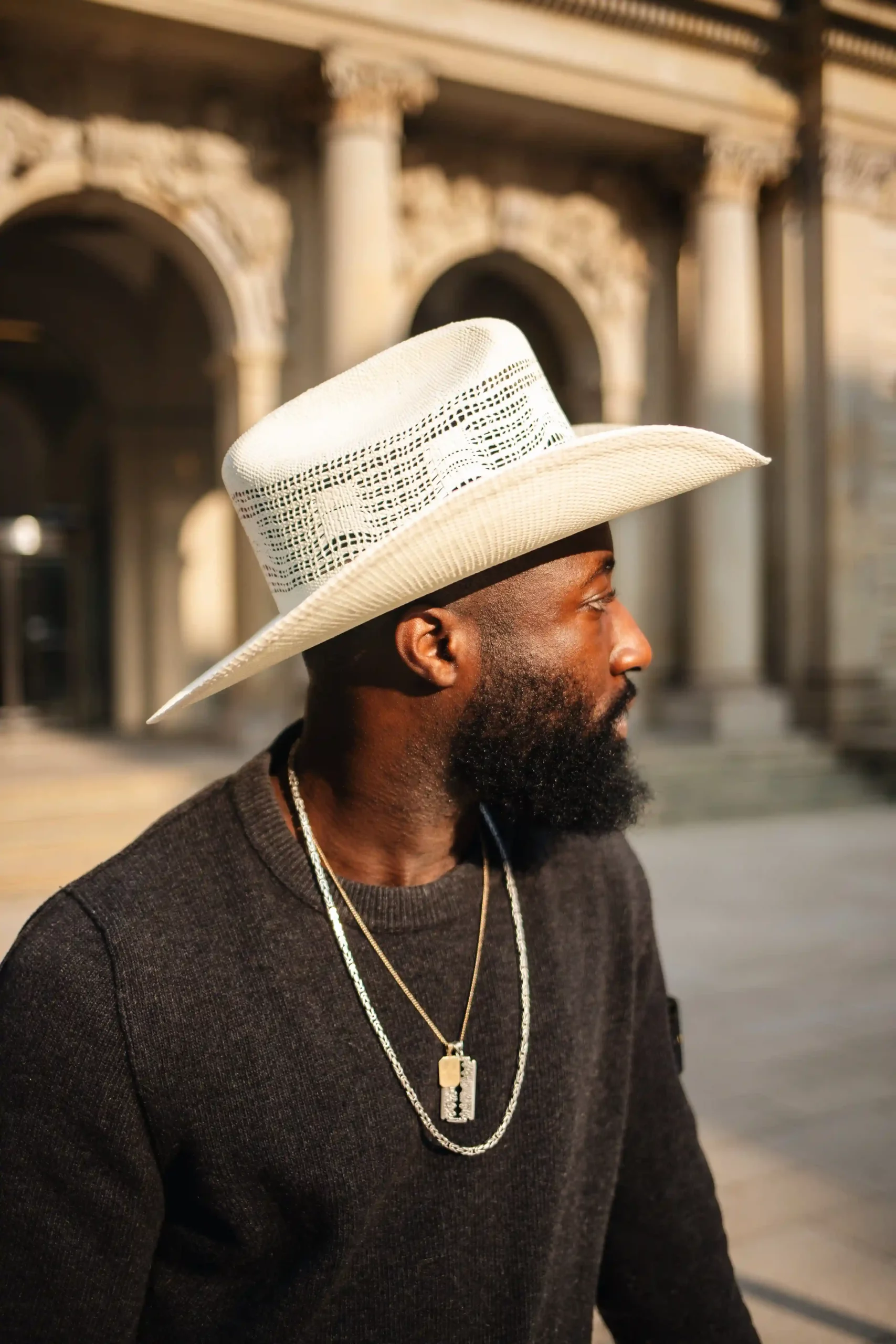 Der Bailey Western Desert Breeze ist ein klassischer Cowboyhut aus Bangora Stroh. Der Rand hat die typische Cattleman Form, eine breite, seitlich leicht nach oben verlaufende Krempe (auch Cattleman genannt). Ein langgezogener, ovaler Marlboro Kopf gibt dem Westernhut das typishe Aussehen. Es gibt ein dezentes Belüftungsmuster, damit Sie einen kühlen Kopf bewahren, sowie ein schmales Ripsband mit Sporenstift als Garniturabschluß. Das Papierstroh ist fest gesteift, so dass der Sommerhut nicht seine Form verliert. Zusätzlich handelt es sich bei dem Futterband um ein Dri-Lex-Schweißband, das kühlt und bequem ist. Ein cooler Hut für für die Großstadt- Cowboys.