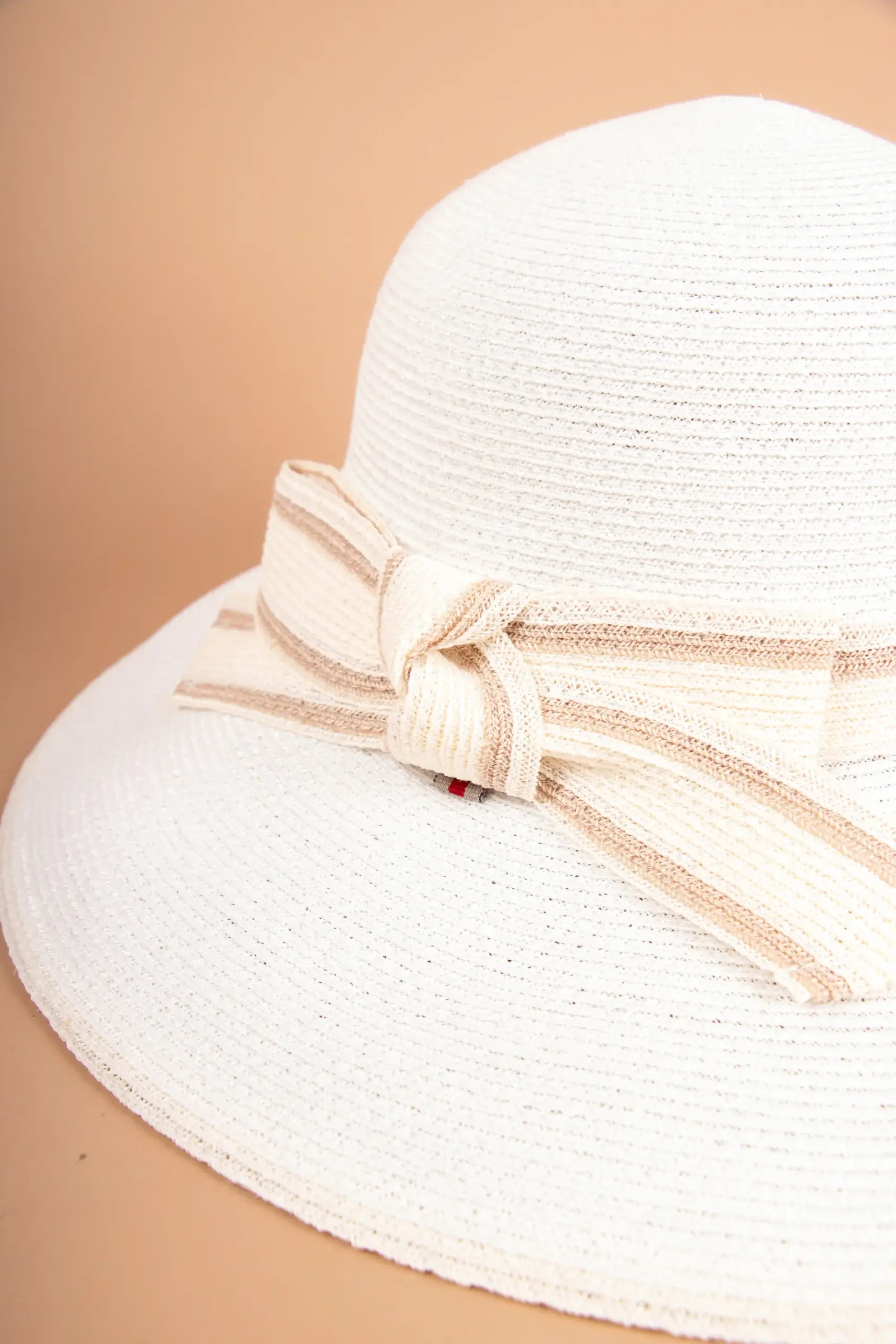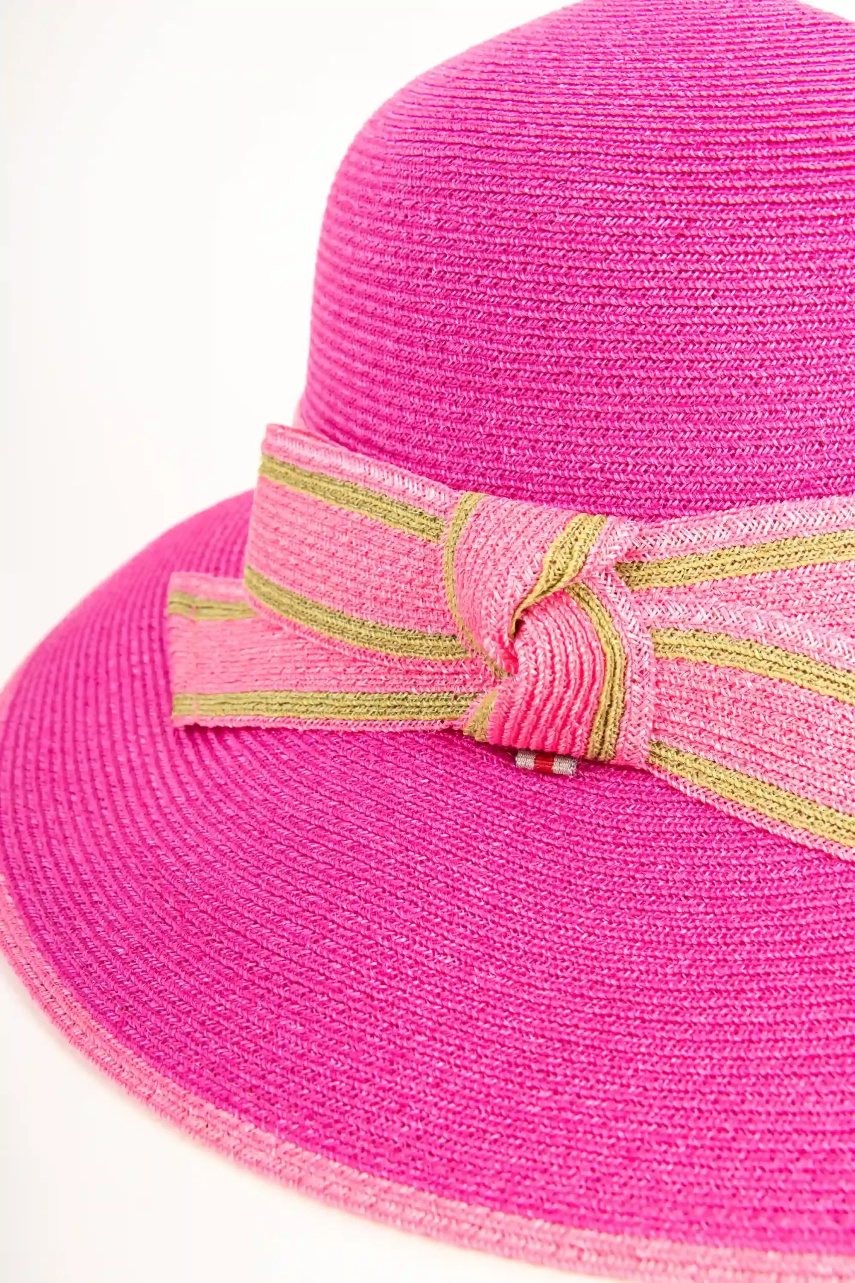 Ein sehr dekorativer Sommerhut ist die Bedacht Hanf Glocke. Der Damenhut ist aus einem Hanf-Baumwoll-Mix gefertigt. Das perfekte Accessoires für ein besonderes Event oder eine schöne Gartenparty mit Freunden und Verwandten. Ein Anlasshut für viele Gelegenheiten. Sehr hübsch auch zum Sommerkleid. Die sehr große Glocke mit breiter Krempe. DeGarnitur besteht aus einer zweifarbigen Schleife aus Hanf, die sich farblich vom Hanf des Hutes absetzt. Auch der Umschlag am Rand ist in der Farbkombination. Ein abgerundeter Look. Holen Sie sich die Bedacht Hanf Glocke und verleihen Sie Ihrem Look das gewisse Etwas. Dieser Strohhut wird für Aufsehen sorgen!