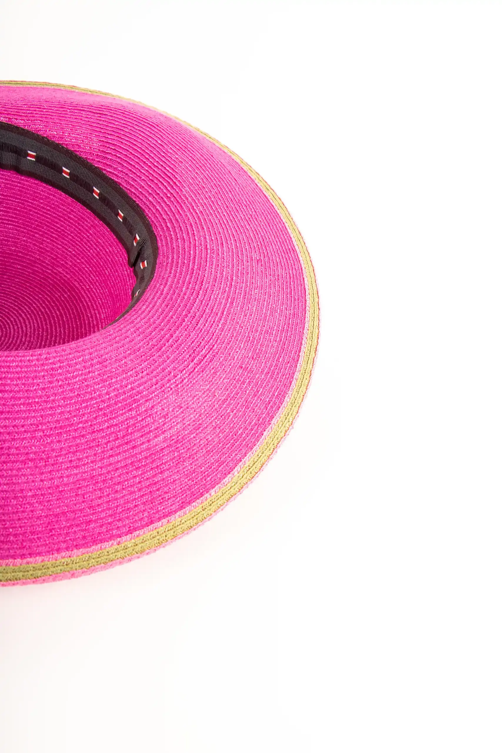 Material: 85% Hanf, 15% Baumwolle Kopfhöhe: ca. 9 cm Randbreite: ca. 10,5 cm Farbe: Marine, Weiß, Pink Größe: Unisize ( ca. 56 cm)