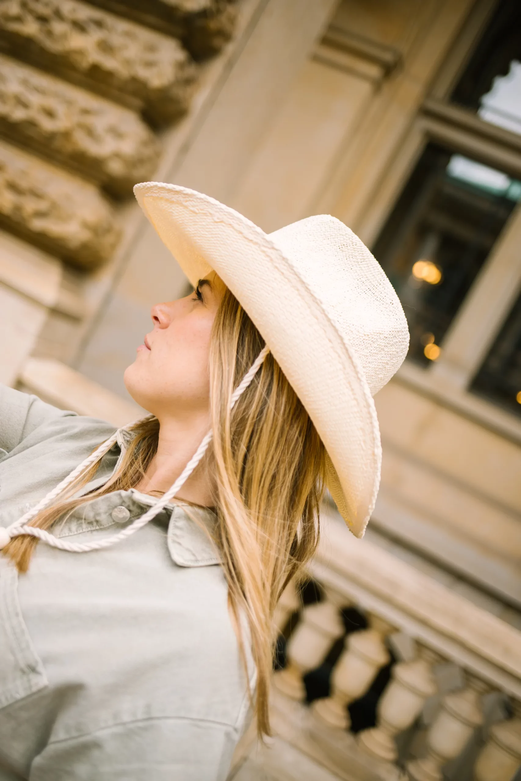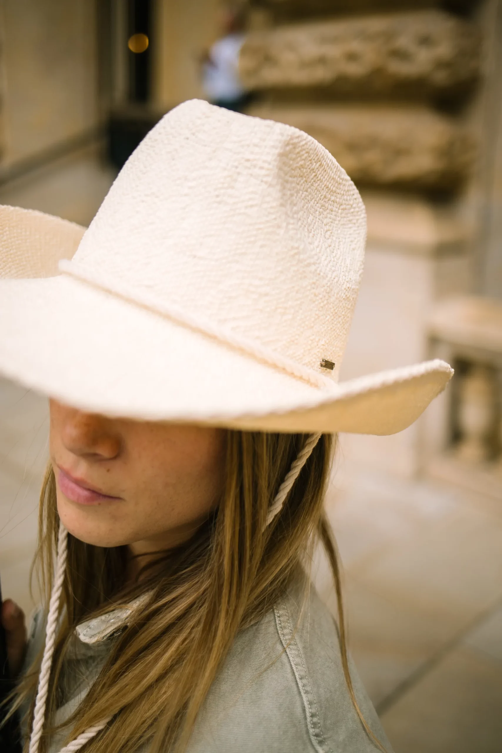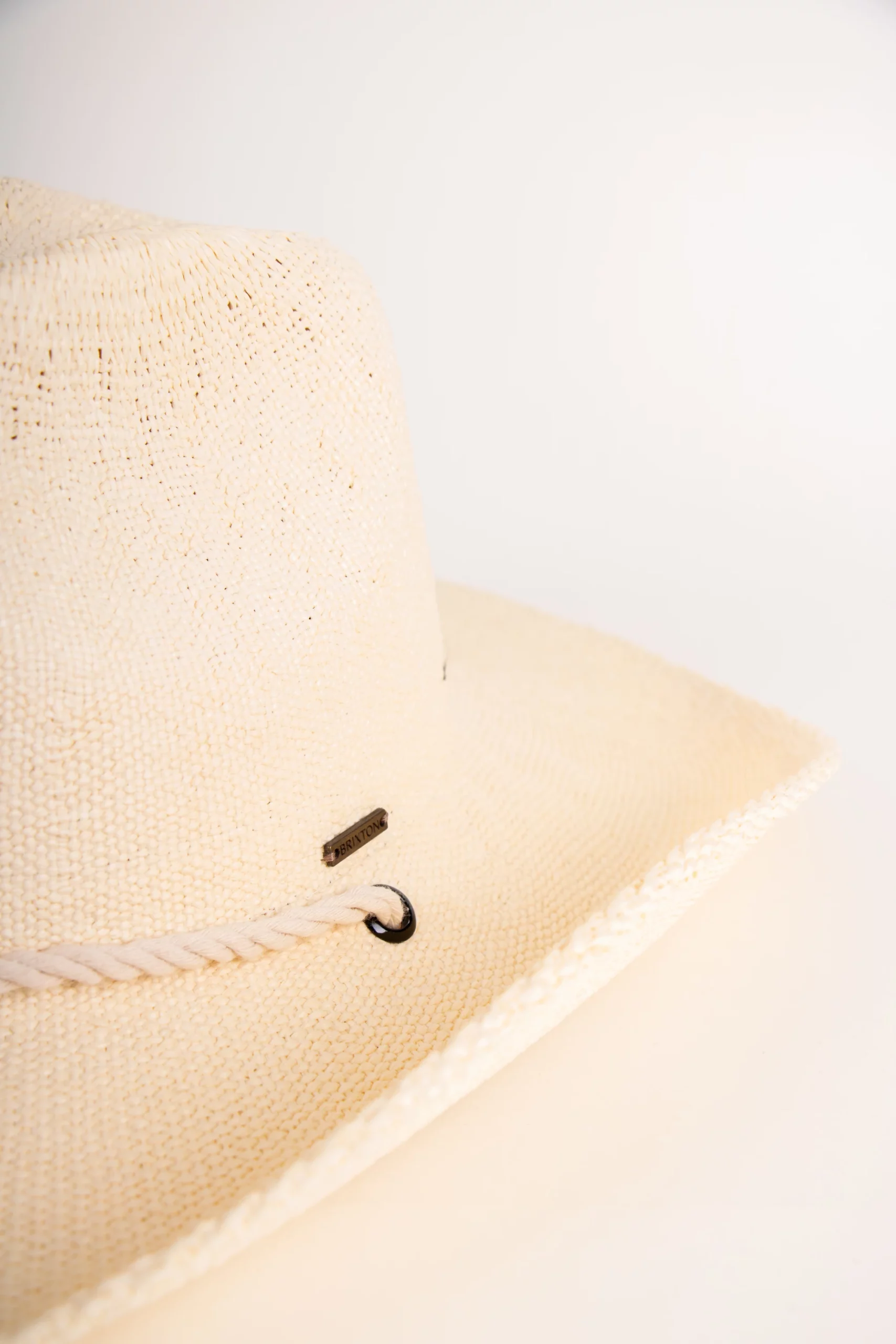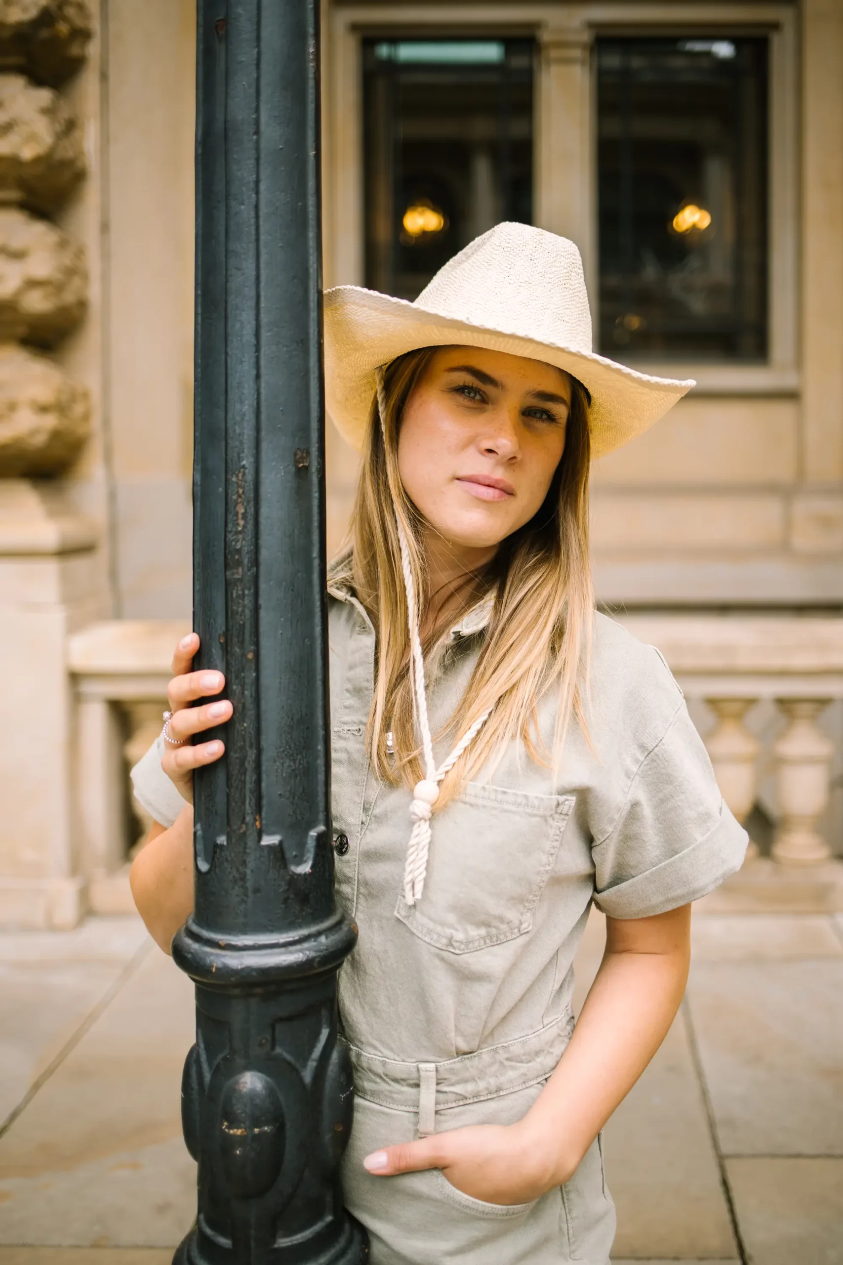 Der Brixton Austin Straw Cowboy in der Farbe Bone ist ein sehr stylischer Westernhut. Der angesagte Cowboyhut ist aus 100% Papierstroh und stark appretiert. D.h. er behält seine Form auch bei Beanspruchung. Die typische Cattleman Form ist die breite, seitlich leicht nach oben verlaufende Krempe (auch Cattleman genannt) . Auch die Einbuchtungen im Kopfteil sind natürlich vorhanden. Also ein ganz typischer Cowboy Hut auch für die Großstadt. Und das stylische Kordelgarniturband sorgt dafür, dass der Strohhut auch bei Gegenwind nicht herunterfällt.