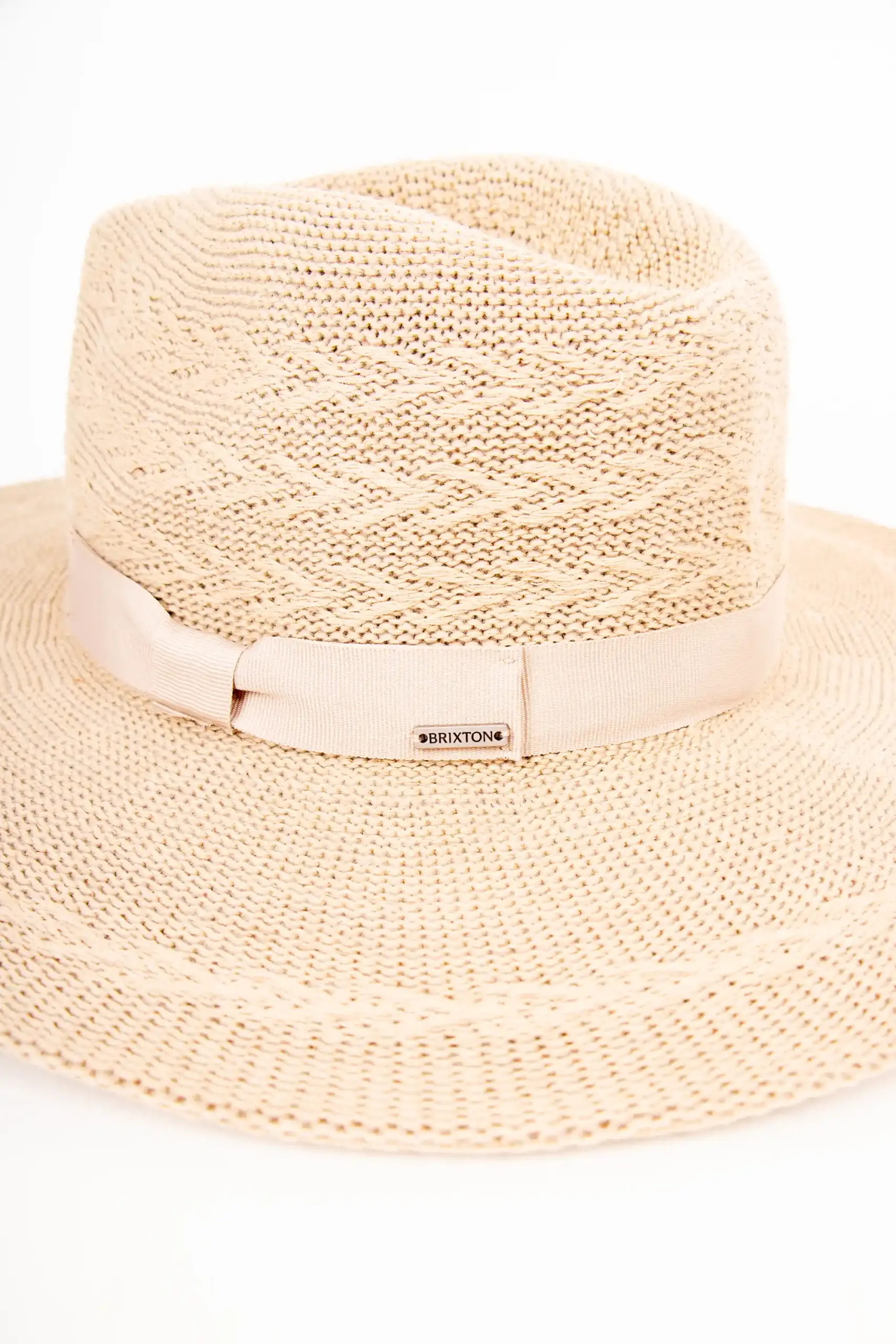 Der Brixton Lyons Knit Pattern ist ein sehr stylischer Sommerhut aus 100% Baumwolle. Der Farbton zwischen Beige und Grün passt sich hervorragend zur sommerlichen Garderobe an. Das Innenband aus Stoff unterstützt den guten Sitz. Das schlichte Garniturband ist aus Leder. Ihre individuelle Größe kann über ein Band im Inneren des Hutes eingestellt werden. Tragen Sie diesen Sommerhut klassisch zum lässigen Festival Look, am Strand oder cool in der City. Der ca. 9 cm breite Rand schützt Sie vor der Sonneneinstrahlung. Ein attraktives, eingestricktes Muster schmückt den sommerlichen Hut.