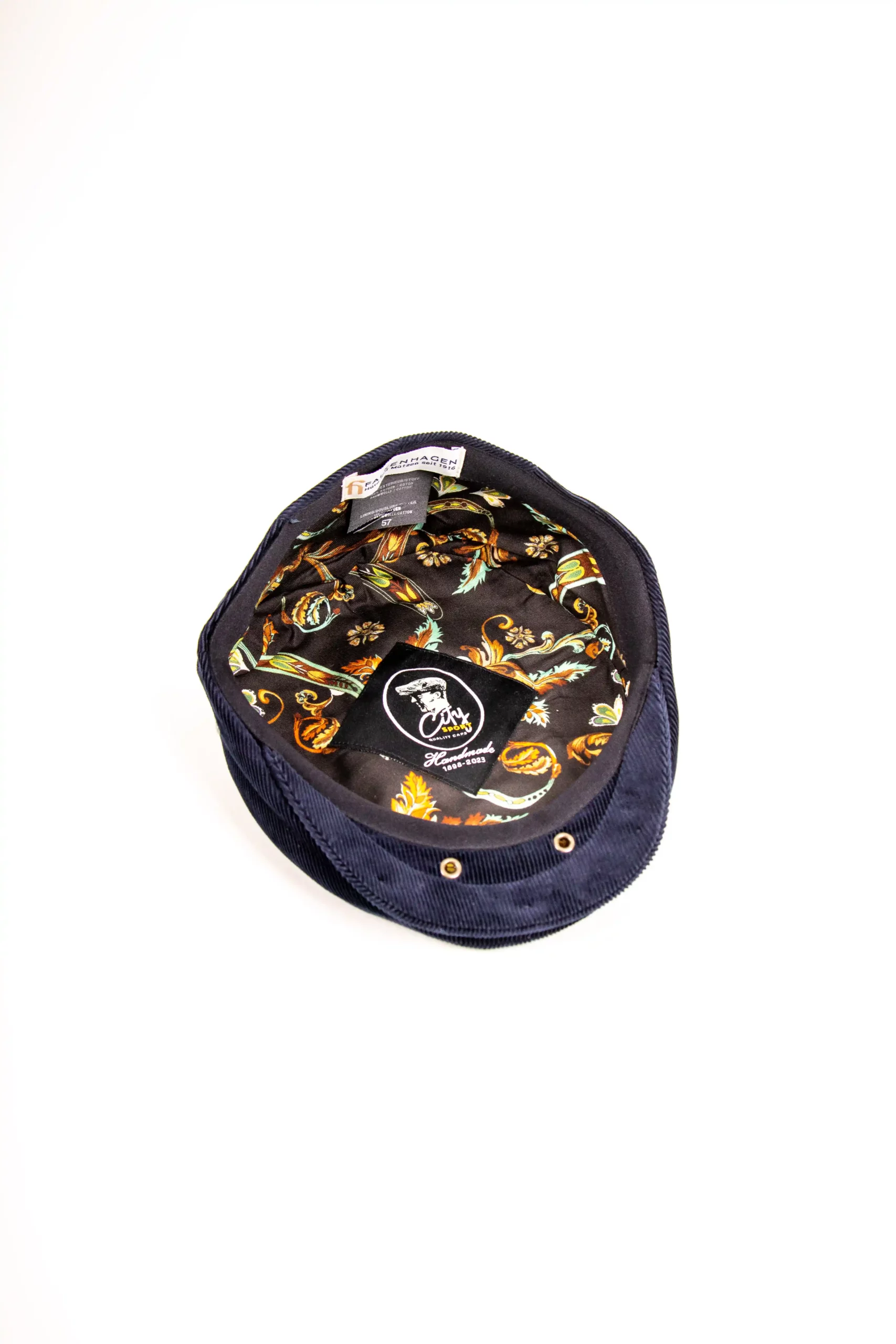 Die Schirmmütze City Sport Aaron Cord überzeugt durch Qualität aus 100% Baumwolle. Der dunkelblaue Cord Stoff erlaubt viele Kombinationen zur herbstlichen Garderobe. Der sportliche Style ist Hauptakteur dieser Flat Cap, aber auch das Klassische kommt nicht zu Kurz. Der Tragekomfort ist auf jeden Fall gegeben. Die Besonderheit dieser Sportmütze ist der sehr kurze Schirm mit ca. 4 cm. Das Futter besteht aus 100% Baumwolle und hat ein wunderschönes Blattdesign. Schiebermützen dieser Form sind echte Allrounder.