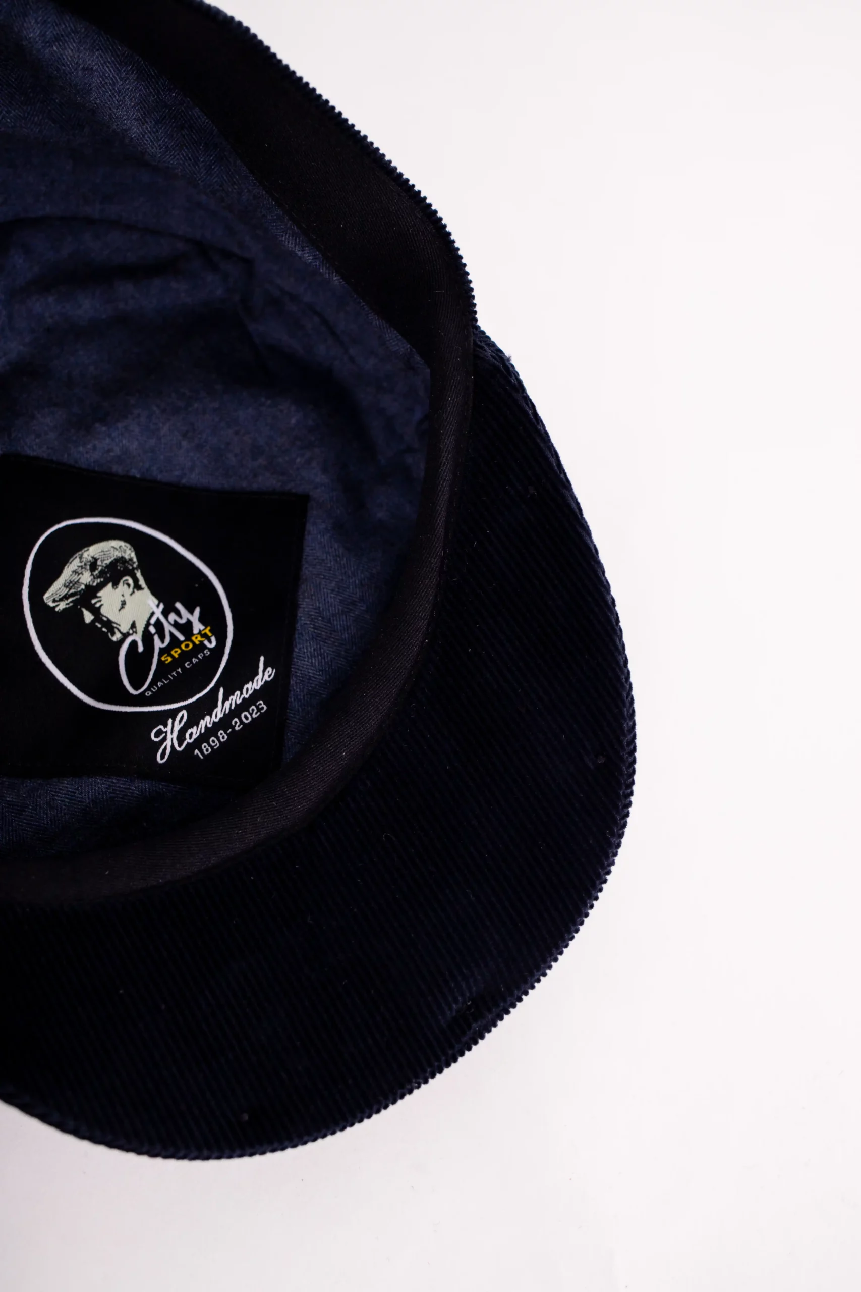 Material: 100% Baumwolle (Cord) Futter: 100% Baumwolle Farbe: Blau Schirmlänge: ca. 6 cm