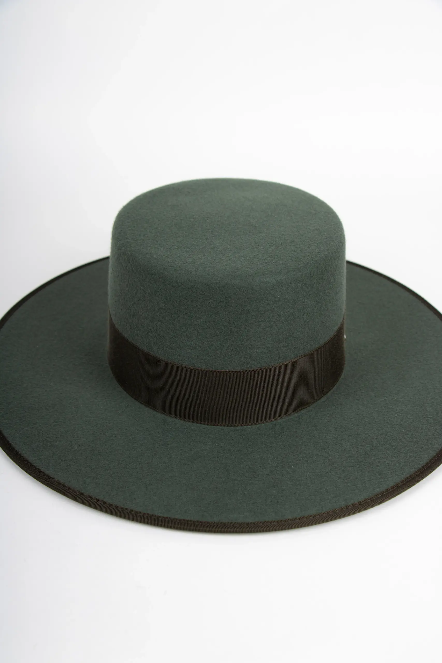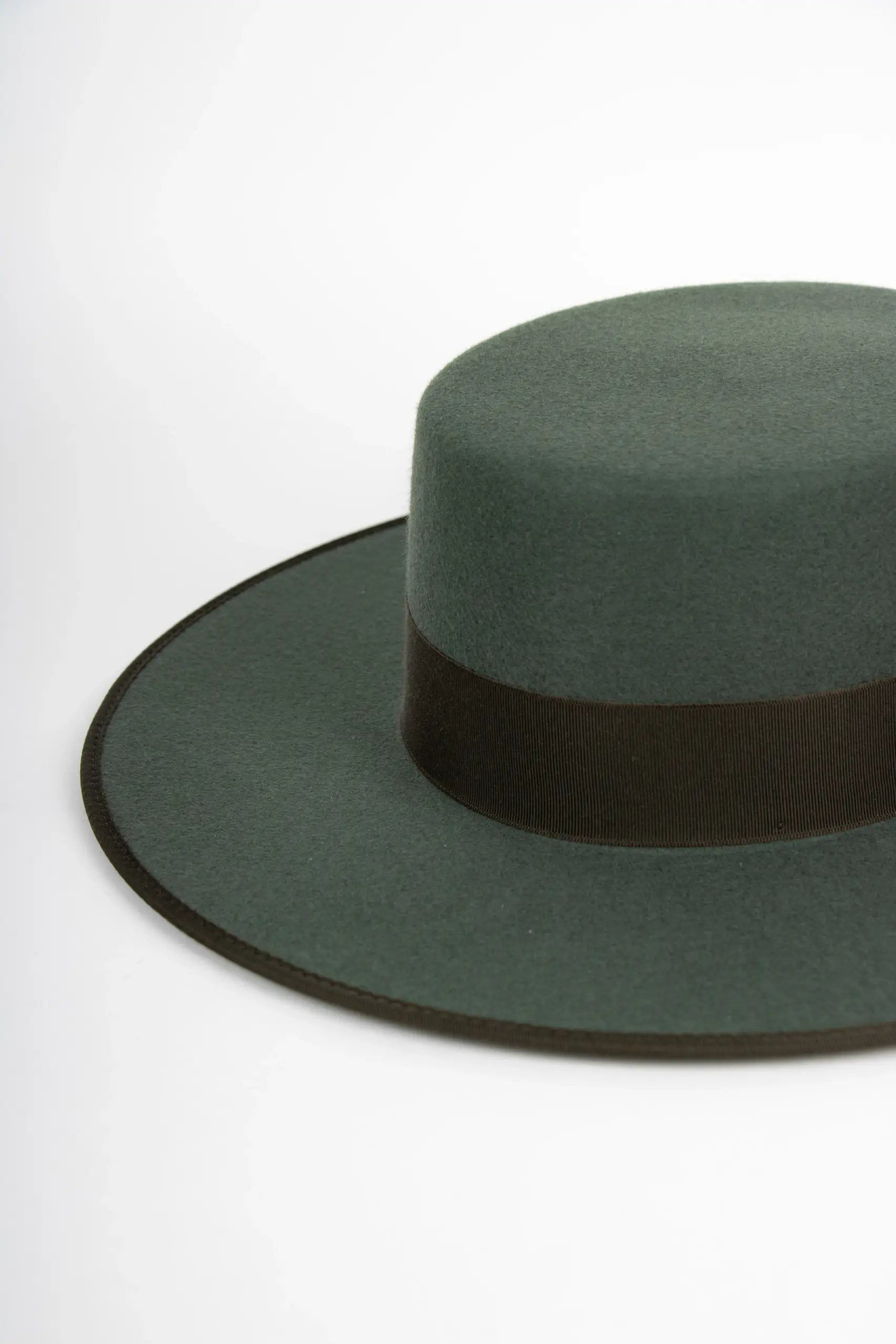Gefertigt aus feinem Wollfilz, beeindruckt dieser Hut durch seine präzise Linienführung – die flache Krone und die markante 9 cm Krempe verleihen ihm seine unverkennbare Silhouette. Ein feiner Einfass und das Ton-in-Ton-Hutband fügen sich harmonisch ins Gesamtbild ein, ob in warmem Vanille-Beige oder tiefem Tannengrün.