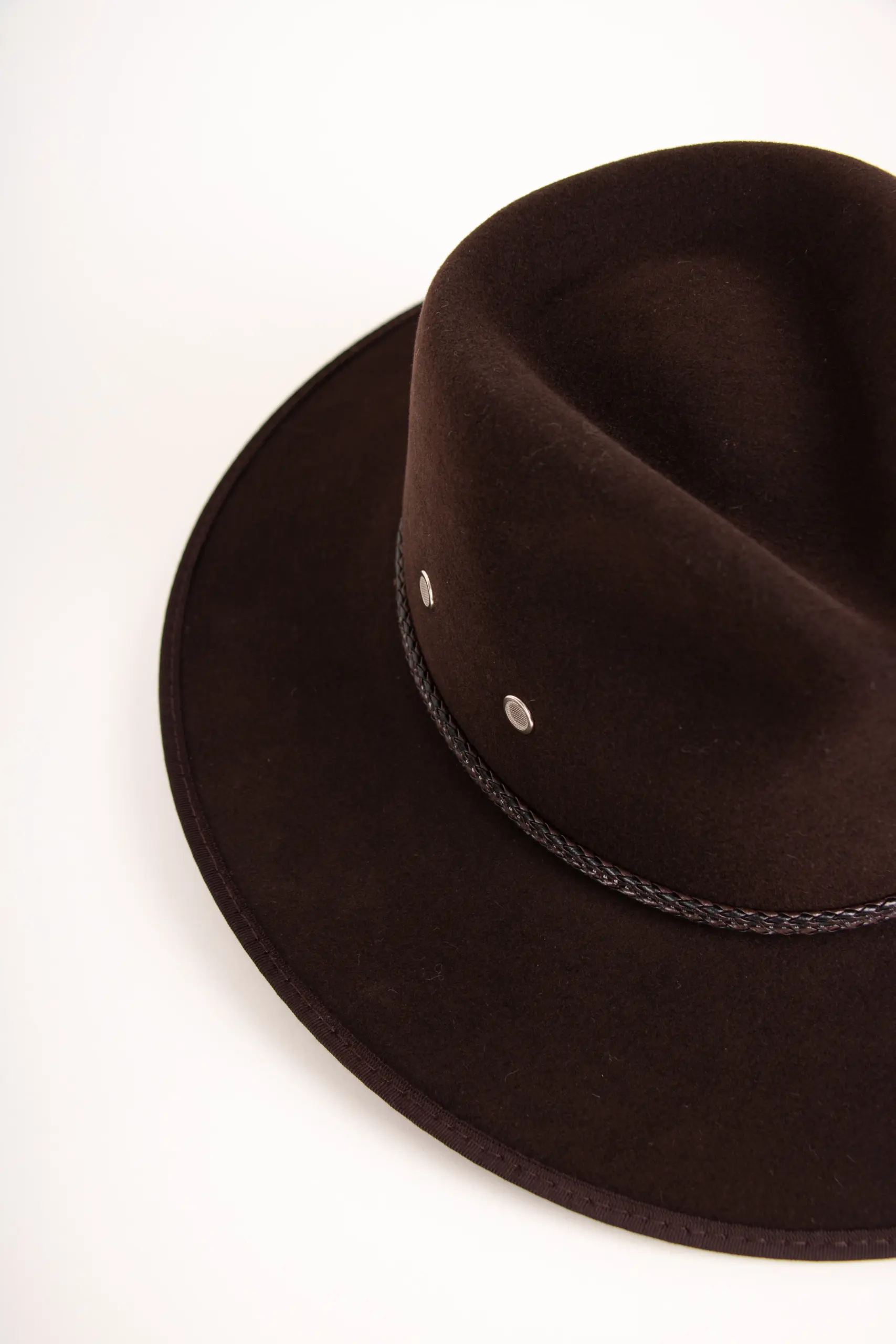 Das geflochtene Lederband mit dezenter Schnalle unterstreicht die zeitlose Eleganz des Hutes, während Lüftungsösen an den Seiten für angenehmen Tragekomfort sorgen. Der Krempenrand ist fein abgenäht, das Innenband aus Baumwolle schmiegt sich sanft an den Kopf. Ganz bewusst verzichtet Fléchet auf ein zusätzliches Innenfutter, was den Hut besonders atmungsaktiv.
