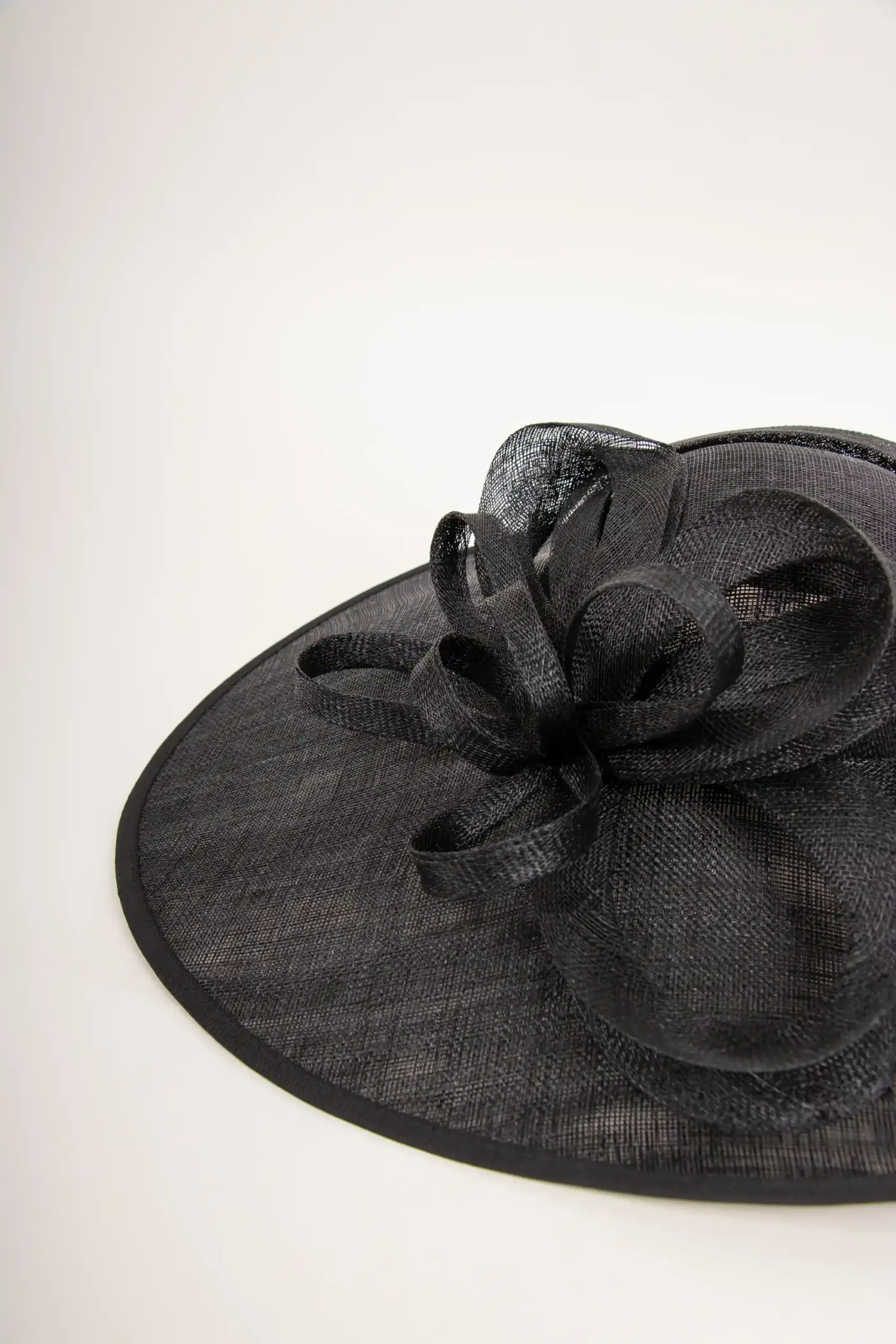 Der große Sinamay Saucer Judith ist ein großer Strohhut mit flachem Kopf, der durch einen breiten Haarreif gehalten wird. Der große Fascinator ist aus leichtem, transparenten Stroh und ist ideal für die Hochzeit im Sommer, eine Schiffstaufe oder auch das Pferderennen in Horn oder Hoppegarten. Der Kopf ist flach, der Rand ist asymmetrisch und seitlich mit ca. 18 cm sehr groß. Zudem ist er links leicht aufgeschlagen. Die Granitur ist im der selben Farbe und Material und zeigt eine stilisierte Blume. Im Kopf befindet sich ein herrausnehmbarer Haarreif. Er bewirkt, dass man den Saucer sowohl mit offenen Haaren, als auch mit einer Hochsteckfrisur tragen kann. So bleiben Sie flexibel. Ein wunderbarer Anlaßhut in 3 verschiedenen Farben.