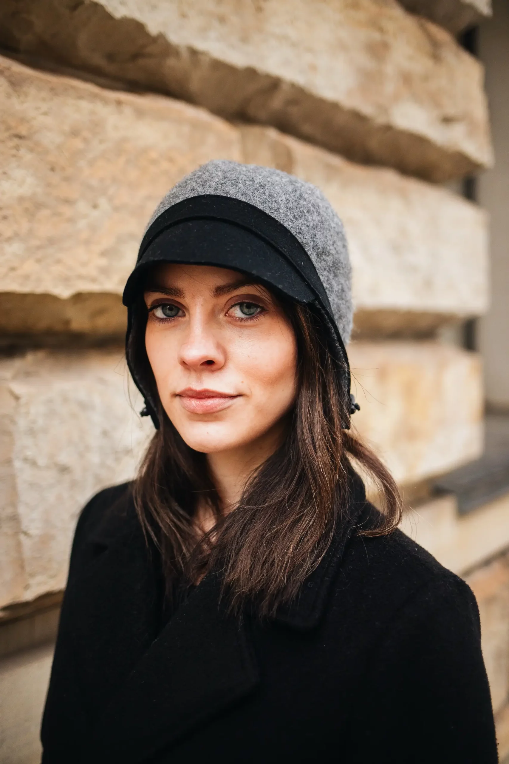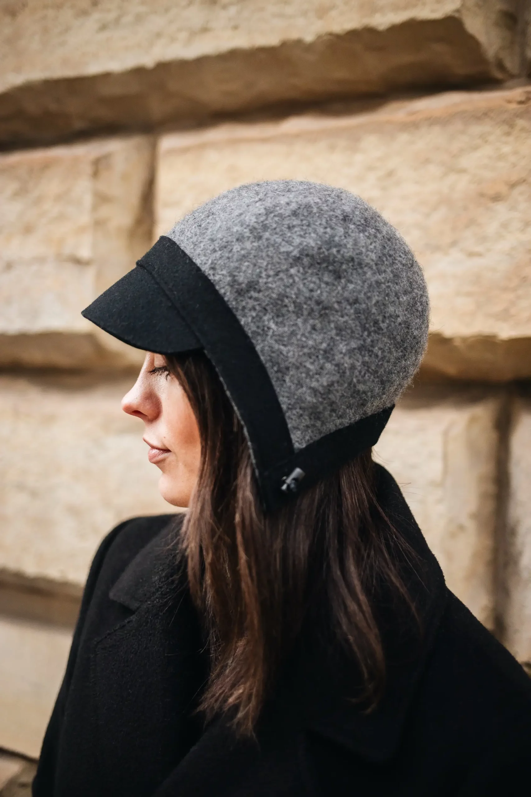 Material: 100% Wolle Farbe: Schwarz/Navy, Grau, Schwarz, Burgund Schirm: ca. 5 cm Größe: S/55 cm