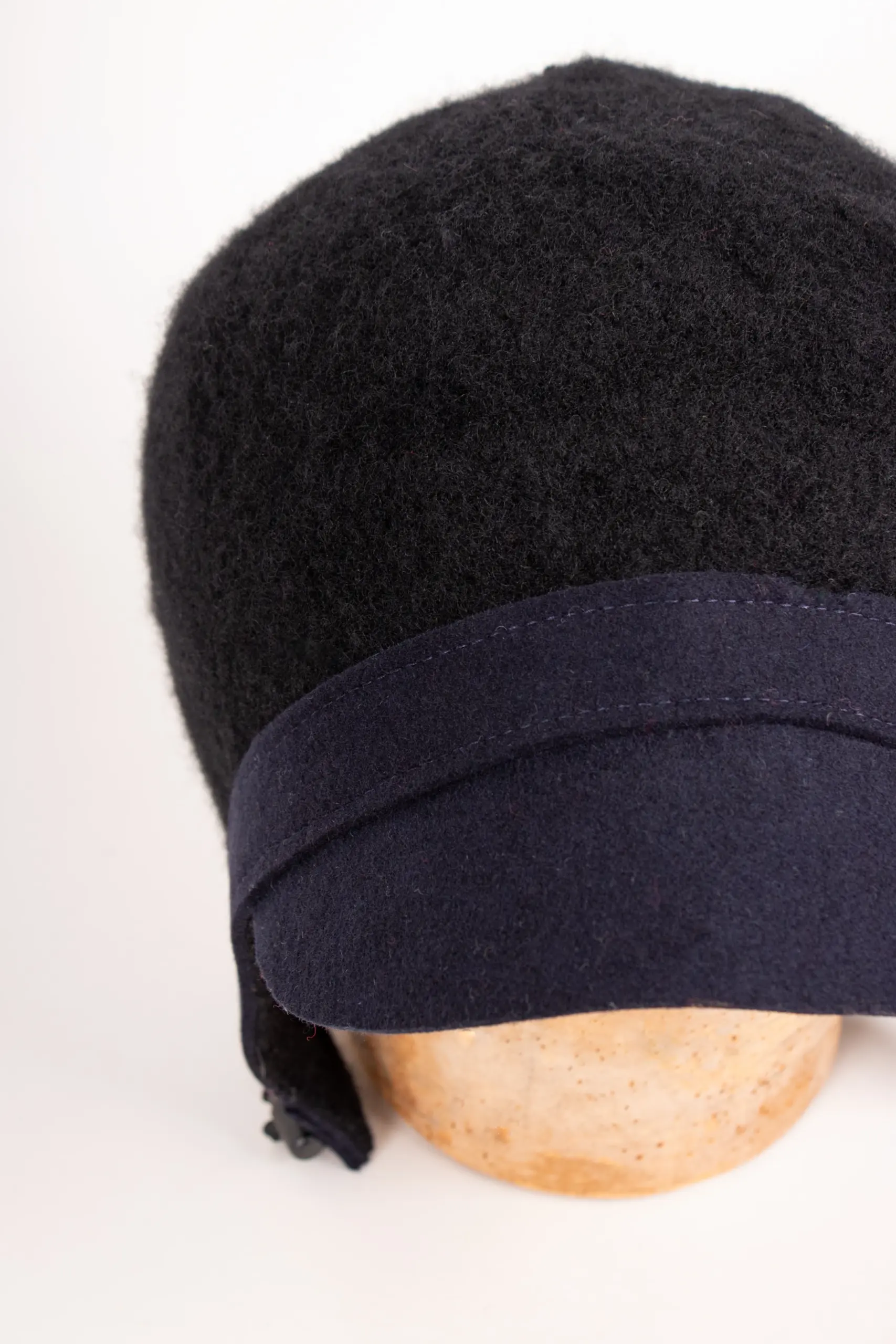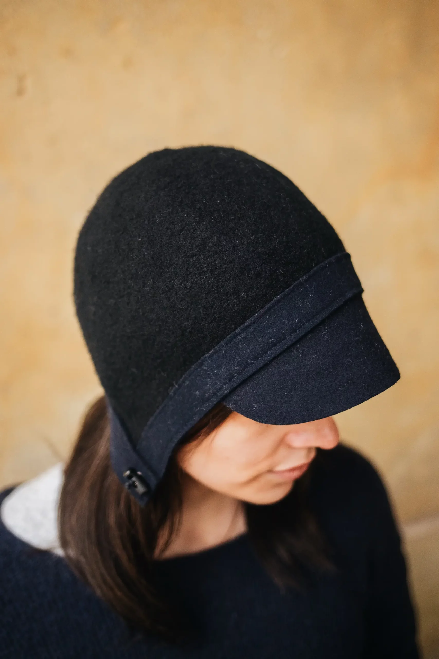 Julie Dubois Aviator ist eine kleine Kappe im Fliegerstil. Sie ist aus 100% Wolle und besonders für schmale Gesichter geeignet. Die Mütze ist abgesetzt ringsherum mit einem ca. 2,5 cm breiten Filzstreifen. Vorne befindet sich ein ca. 5 cm langer Schirm aus Wollfilz. Die Mütze geht über die Ohren und hält auch den Nacken geschützt. Egal, ob Sie einen coolen Streetstyle kreieren oder einfach nur warm bleiben möchten, diese Aviator Wollmütze ist Ihr neuer Freund für die kalte Jahreszeit. Wir führen sie in drei Farbenkombinationen. Handmade in Paris.