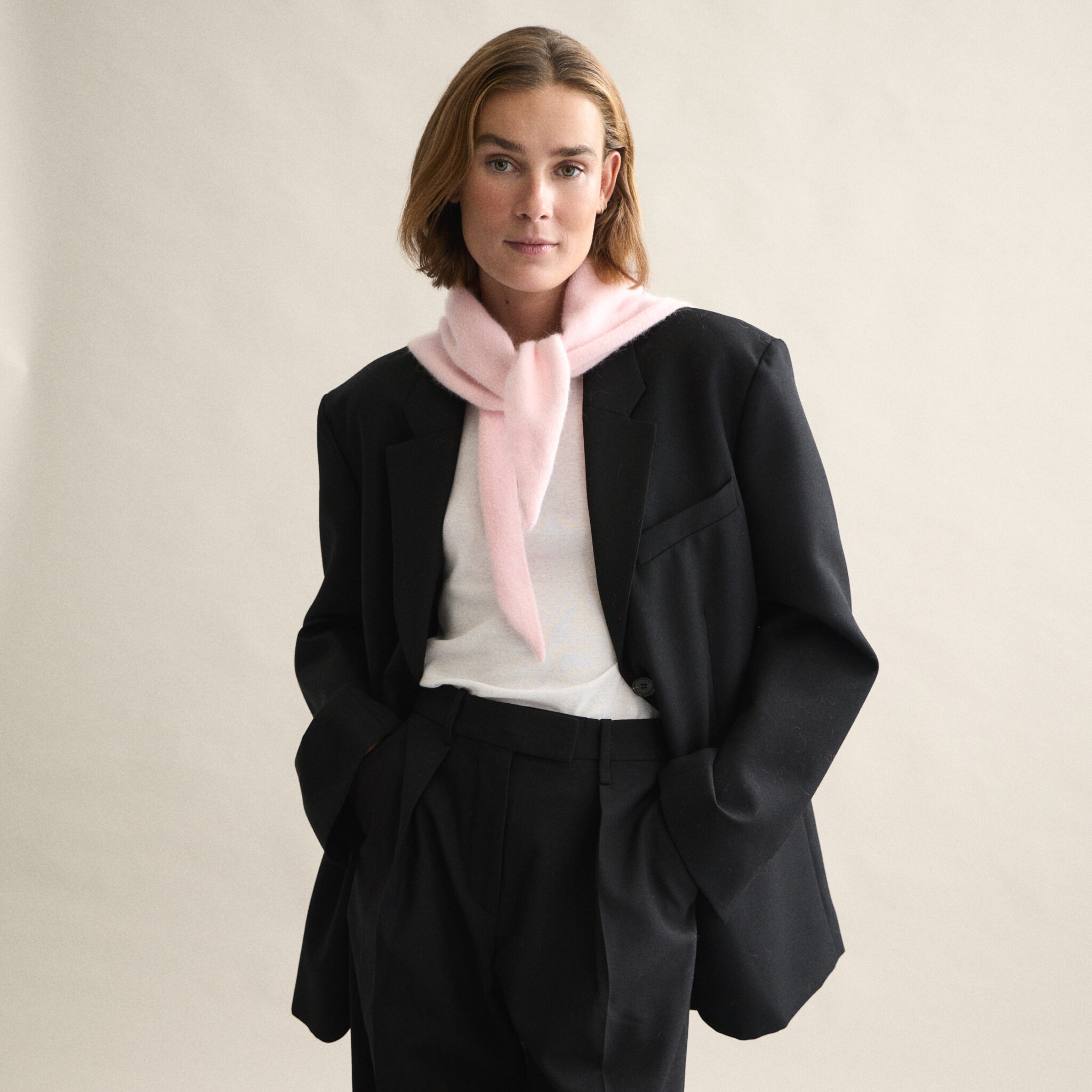 Das Le Bonnet Bandana greift den aktuellen Halstuch-Trend auf – allerdings in einer luxuriösen und nachhaltigen Variante aus feiner Lambswool-Caregora-Mischung. Es wärmt zuverlässig, ohne jemals zu beschweren. So wird es zum Accessoire, das sich sowohl draußen zur Jacke als auch indoor zu Hemd, Kleid oder Strick kombinieren lässt.