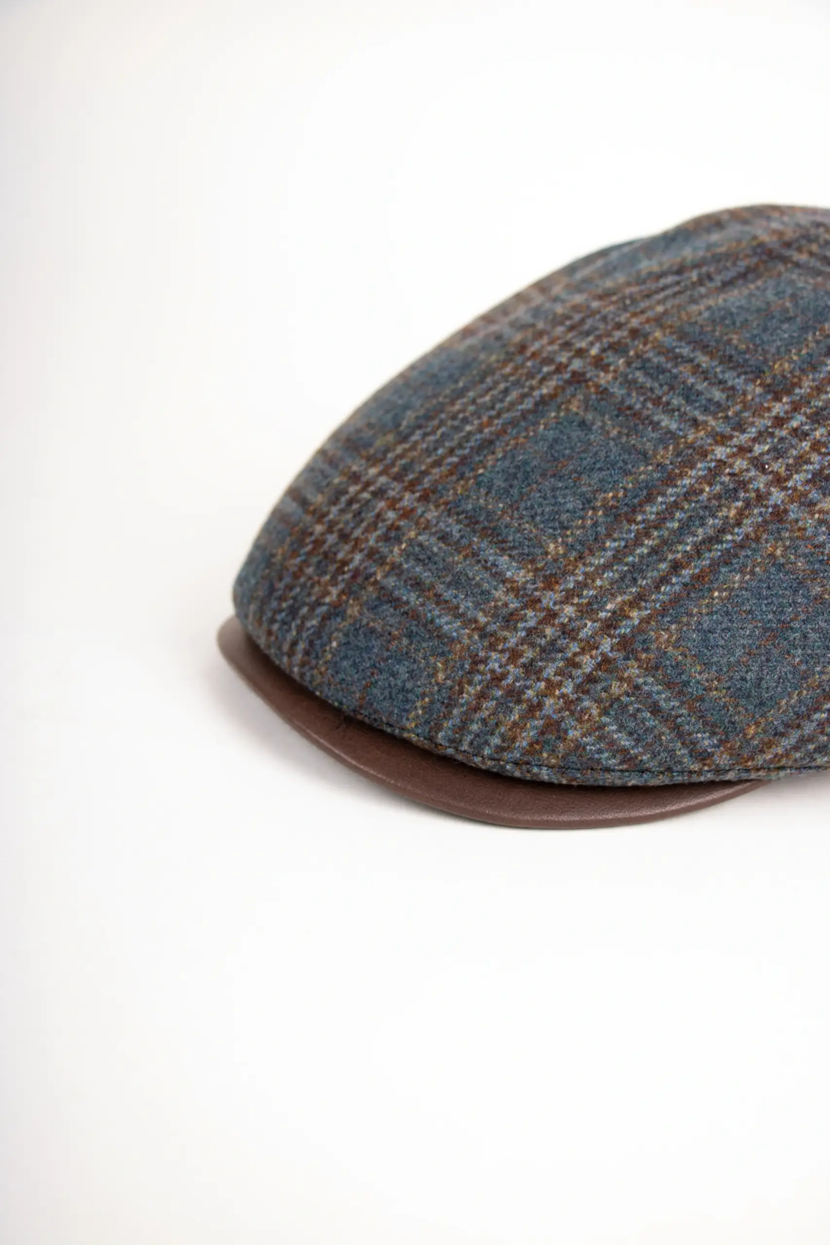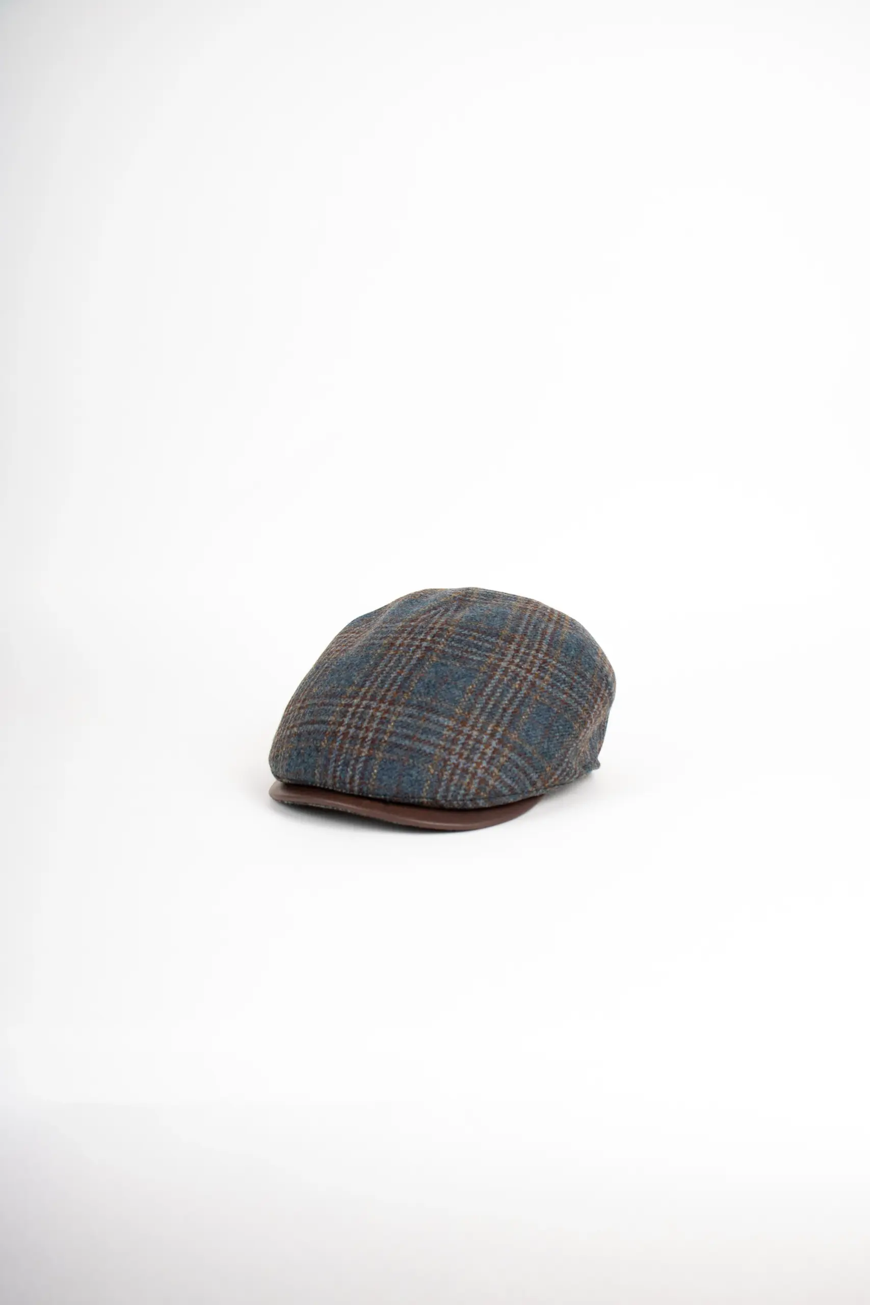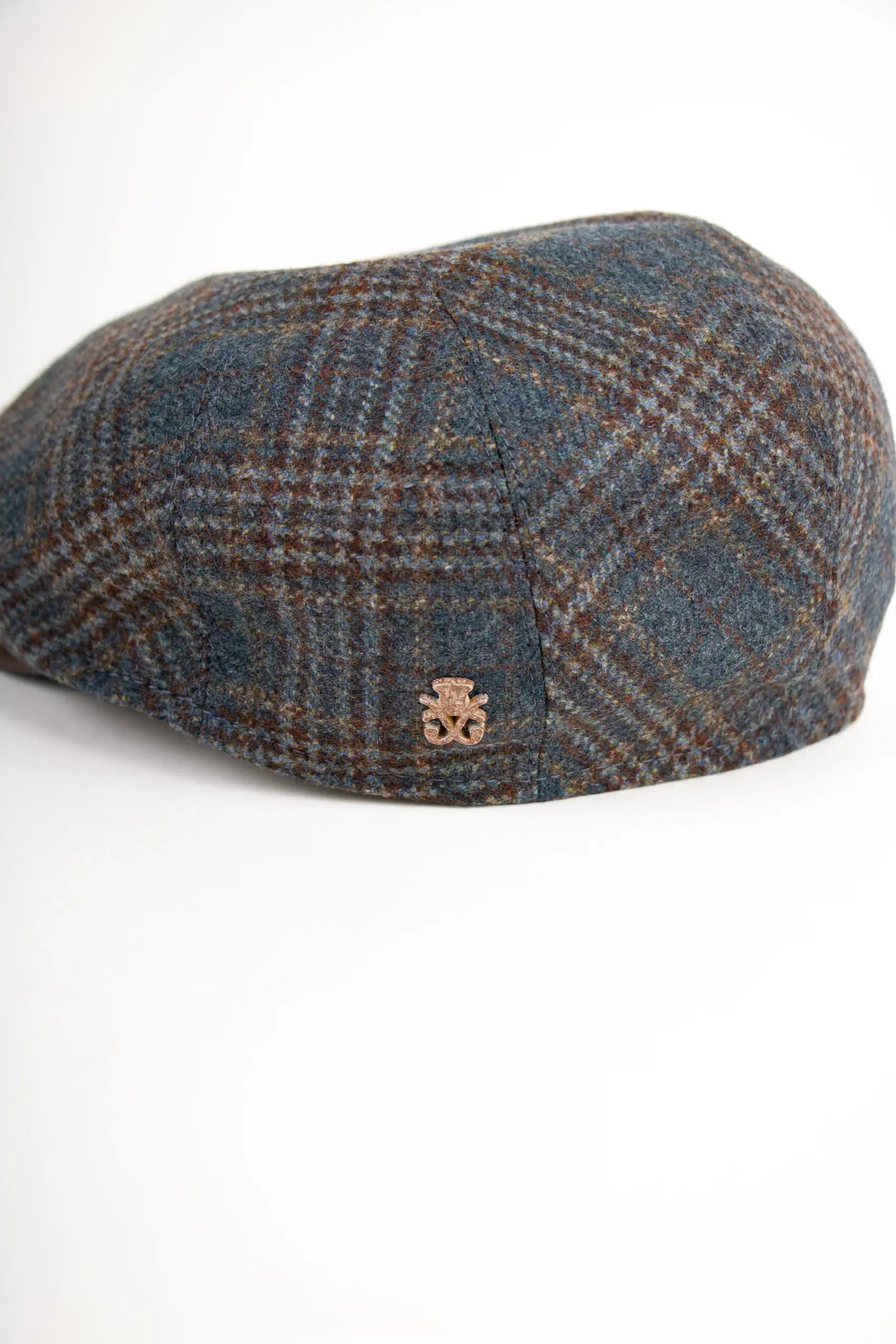 Die Mayser Marzio Zechbauer Flatcap ist ein Meisterstück klassischer Kopfbedeckungskunst – gefertigt aus feinster Schurwolle mit einem charakteristischen Glencheck-Muster in Blau-Braun.