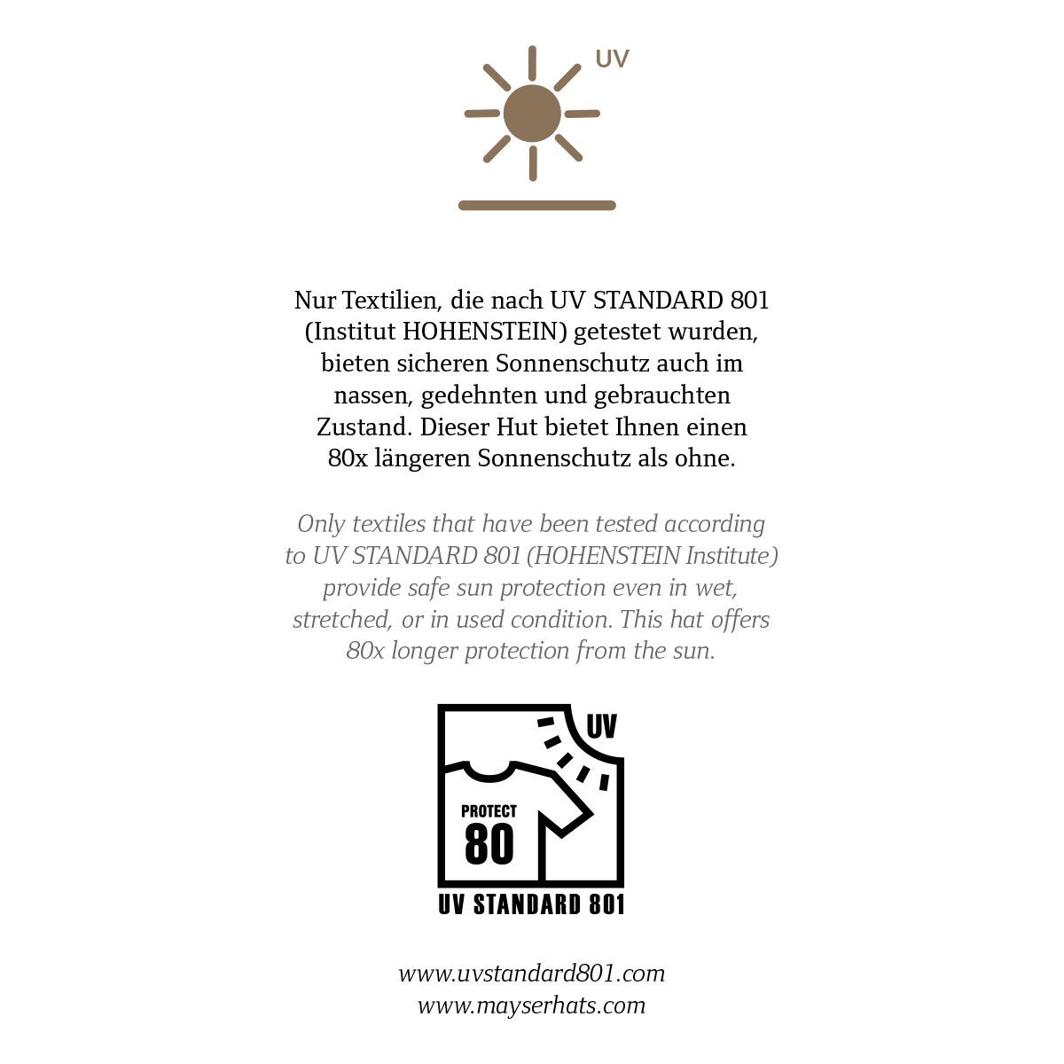 100% Baumwolle / UV-A- und UV-B-Schutz / UV-Schutzfaktor 30-80 (UV-Standard 801) / waschbar / knautsch- und rollbar / strapazierfähig und unempfindlich / windabweisend / angenehm zu tragen