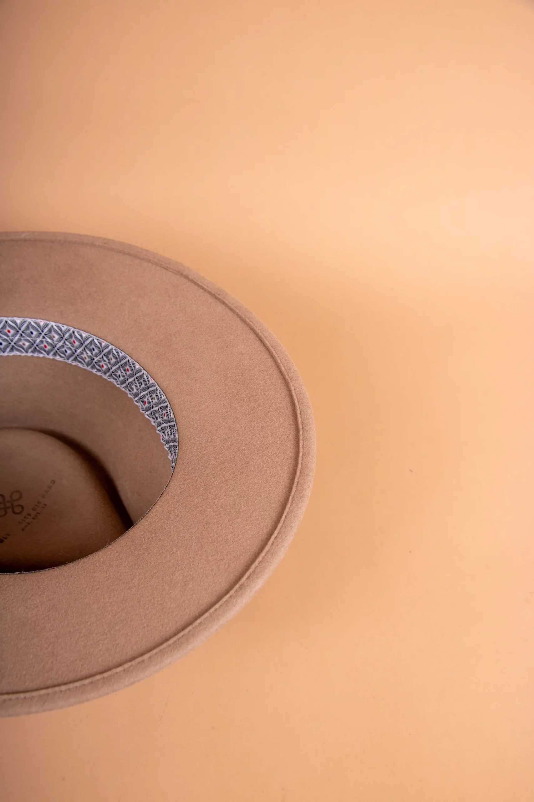 Material: 100% Wollfilz / Wool Felt (enthält nichttextile Teile tierischen Ursprungs) Farbe: Dizzle Desert Kopfhöhe: ca. 10 cm Randbreite: ca. 7 cm