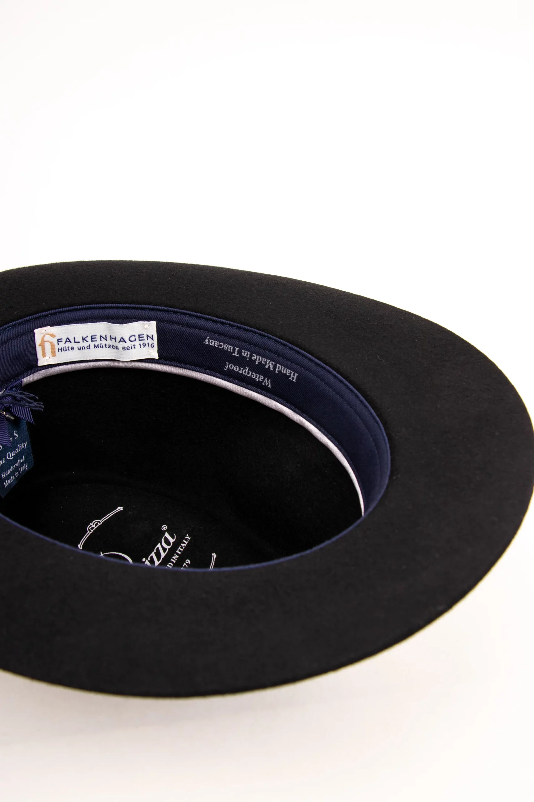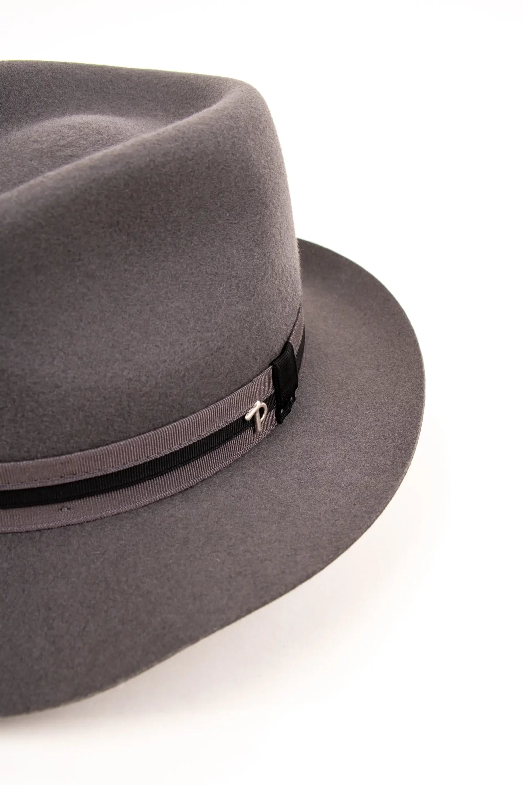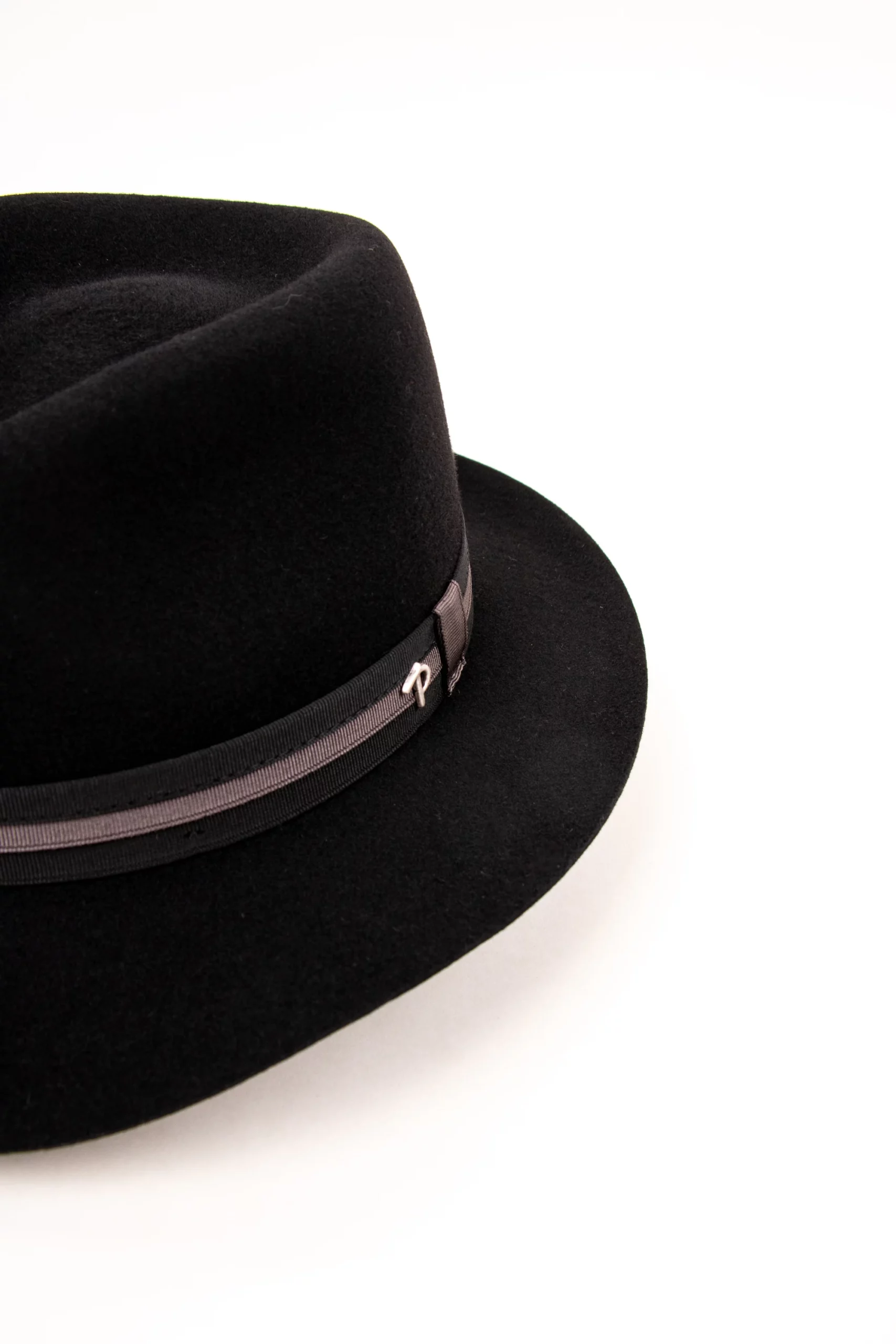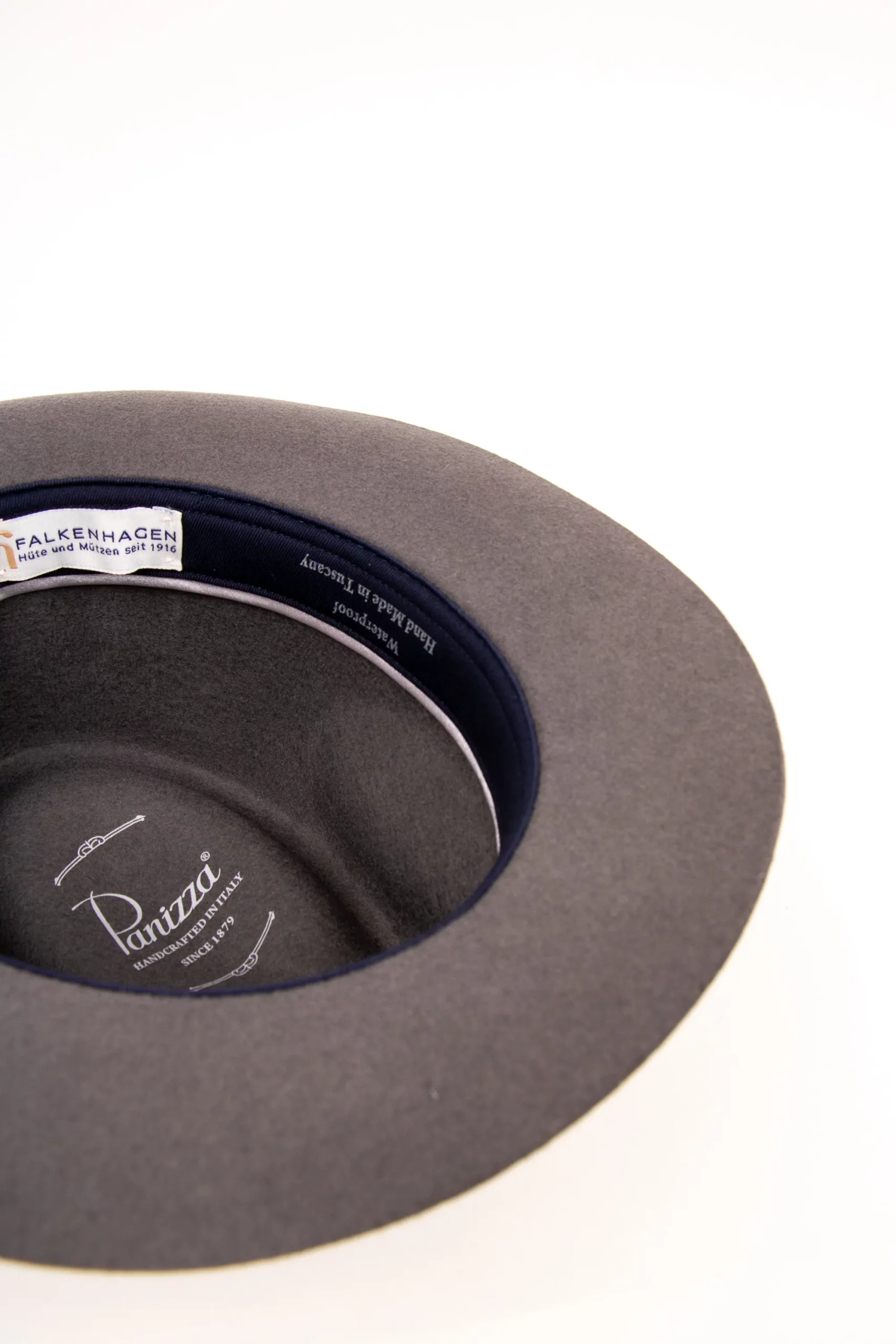 Dieser leichte Herrenhut Panizza Lecco Wollfilz aus 100% Wolle überzeugt mit seiner kleinen, frechen Form. Der Kopf ist ca. 9,5 cm, der Rand mißt ca.5,5 cm. Sehr schön ist das Streifenband, das die Farbe des Hutes wieder aufnimmt und durch eine zweite Farbe akzentuiert wird. Den Trilby, in zwei klassischen Farben erhältlich, paßt sich wunderbar dem jeweiligen Anlass an. Ihr persönlicher Kleidungsstil wird durch diesen feinen Hut eindrucksvoll unterstrichen. Ein kleines Markenlogo schmückt den Filzhut. Herrenhüte wie diesen kombinieren Sie nach Lust und Laune elegant oder lässig. Made in Italy .