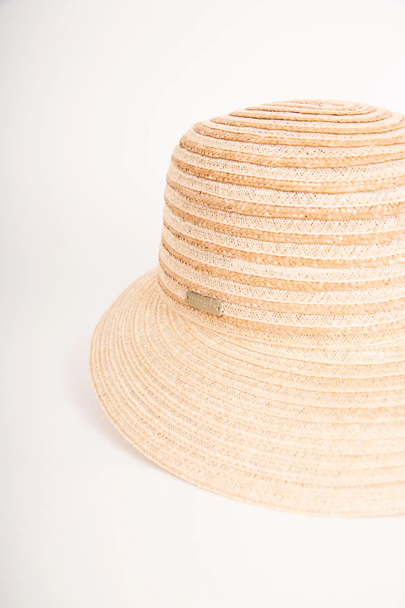 Material: 100% Naturstroh Farbe: Schwalbe/Sand Schwarz/Sand, Leinen/Sand, Weiss/Sand Kopfhöhe: ca. 10,5 cm Randbreite: ca. 2 – 8,5 cm Größe: M/ca. 57 cm, L/ca. 59 cm
