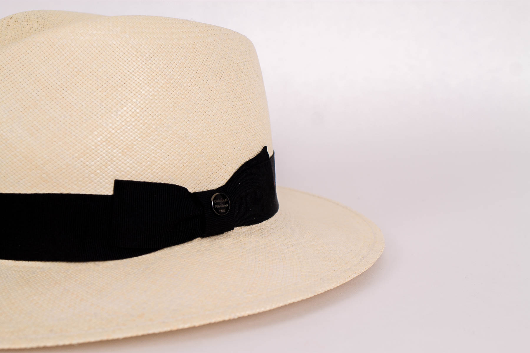Aus feinem 100% Panama Stroh wurde das Sommerhut Vintimilla Hat Fashion fino # 7/8 in Handarbeit geflochten. Der Feinheitsgrad dieser Qualität beträgt ca. 8 Flechtungen pro Zoll. Ein sportlich, eleganter Strohhut für die warme Jahreszeit. Das klassische Ripsband in schwarz schließt mit einer typischen kleinen gelegten Schleife. Der nach unten geformte, breite Rand schützt Nacken und Gesicht sicher vor der schädlichen Sonneneinstrahlung. Der perfekte Begleiter für den Sommer. Hervorragend kombinierbar zum Anzug aber auch zur etwas legereren Garderobe. UV-Schutz. Made in Ecuador.