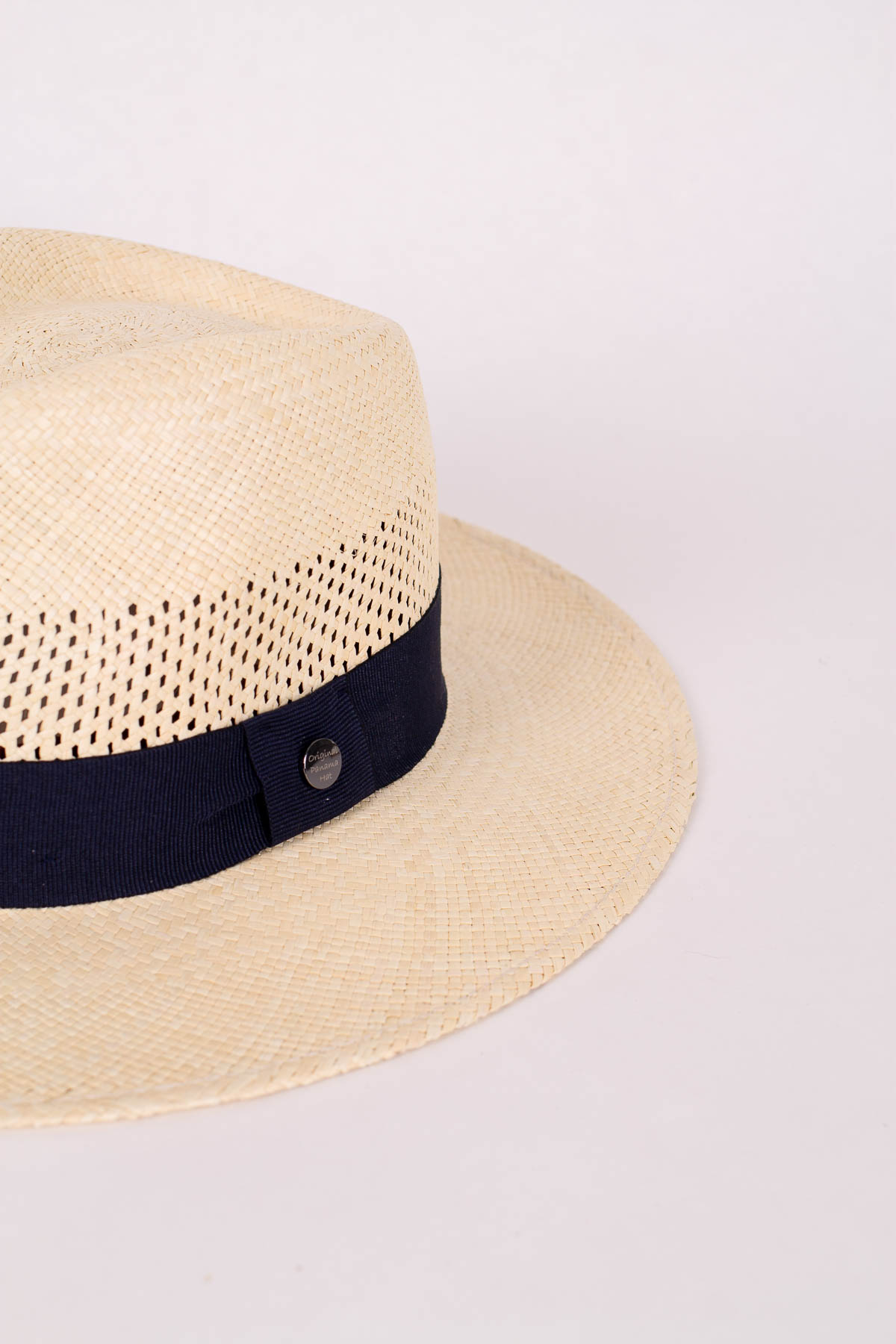 Ein klassischer Panama Strohhut ist der Vintimilla Hat Fashion ventiliert. Sehr aufwendig wurde hier beim Flechten in Handarbeit des Sommerhutes ein Muster gesetzt. Dieses seitliche Lochmuster im Hutkopf unterstützt eine gute Belüftung, So entsteht kein Wärmestau. Eine elegante, blaue Garnitur unterstützt den edlen Look des Pananma Hutes. Made in Ecuador.