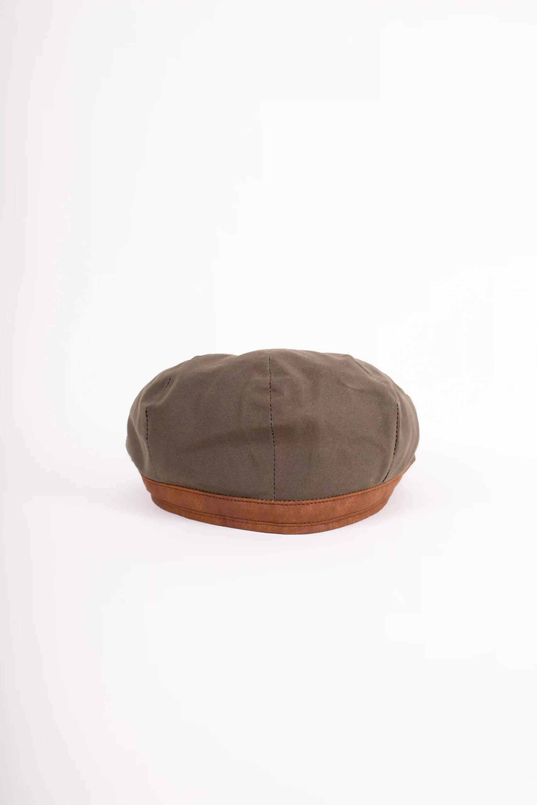 Material: 100% Baumwolle und Leder (enthält nichttextile Teile tierischen Ursprungs) Futter: 100% Polyester (Fleece) Farbe: Oliv, Schwarz Schirmlänge: ca. 5,5 cm